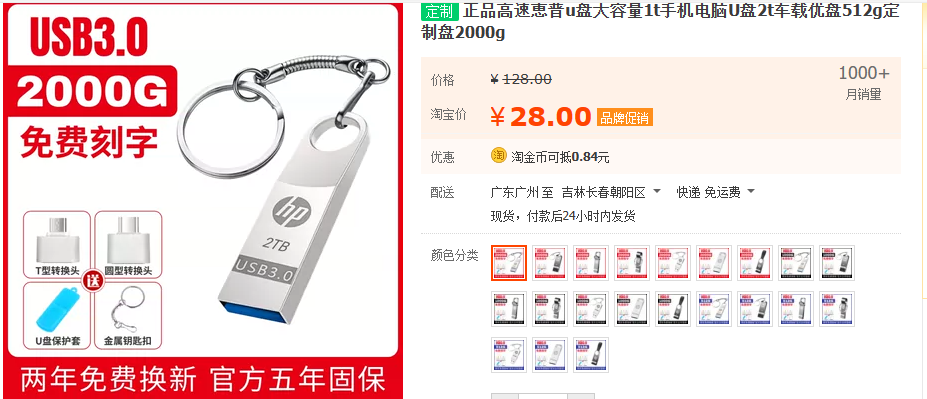 提示:天上不会掉馅饼!!!像下图这种同等容量下价格远低于同类产品的U盘请直接跳过!
