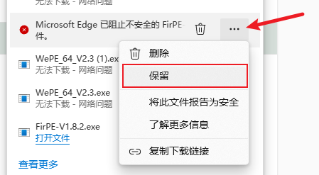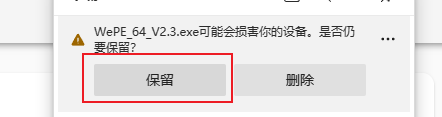 如若遇到浏览器提示是否保留文件,则一律选择保留,如下图所示。
