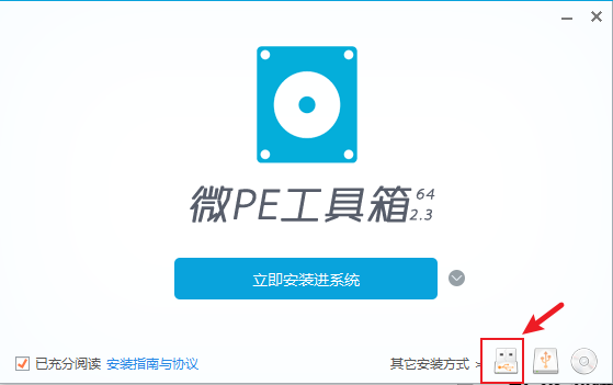 先来介绍微pe的使用: 首先将电脑的杀毒软件等退出,以防止制作途中程序被意外中止。 打开软件后(如遇windows弹窗一律选择允许),点击右下角的U盘图标。