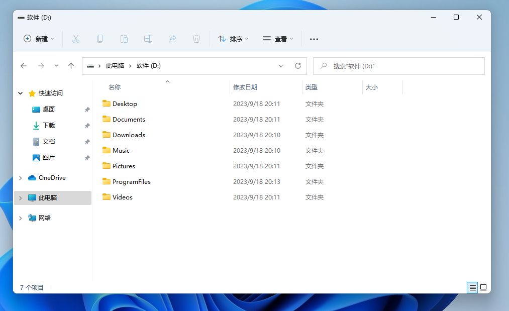 很多朋友在使用电脑一段时间后,会发现C盘发红,也就是容量不够了。此时要清理起来往往比较麻烦。因此我建议一开始就在D盘将对应的文件夹建好,并将系统默认的文件夹移动过去。其具体操作如下: 在D盘新建如下文件夹:
