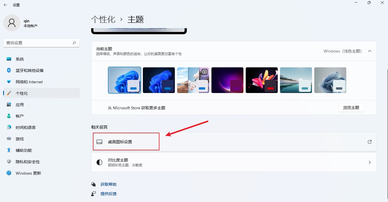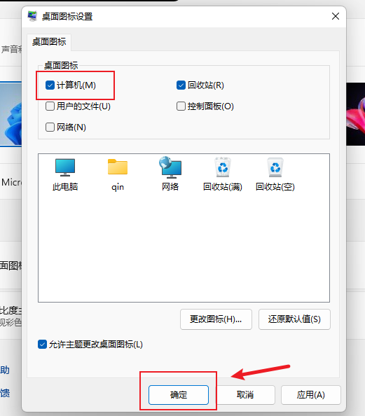 附: Windows安装完成时桌面上默认图标不包含“此电脑”。要添加此图标,请在激活Windows系统后右键桌面,点击“个性化”,依次按如下四张图点击“主题”-“桌面图标设置”-勾选“计算机”-“确定”,即可在桌面看到“此电脑”图标。