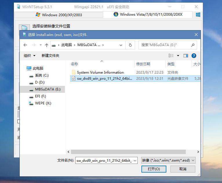 接下来是选择系统安装的分区了,找到目标硬盘下带有“系统”字样的分区选中。