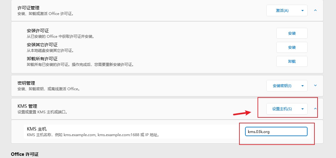 kms.03k.org而后点击“设置主机”,这样就把kms主机设置好了。