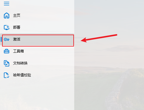 激活部分 点击侧边栏的“激活”选项。