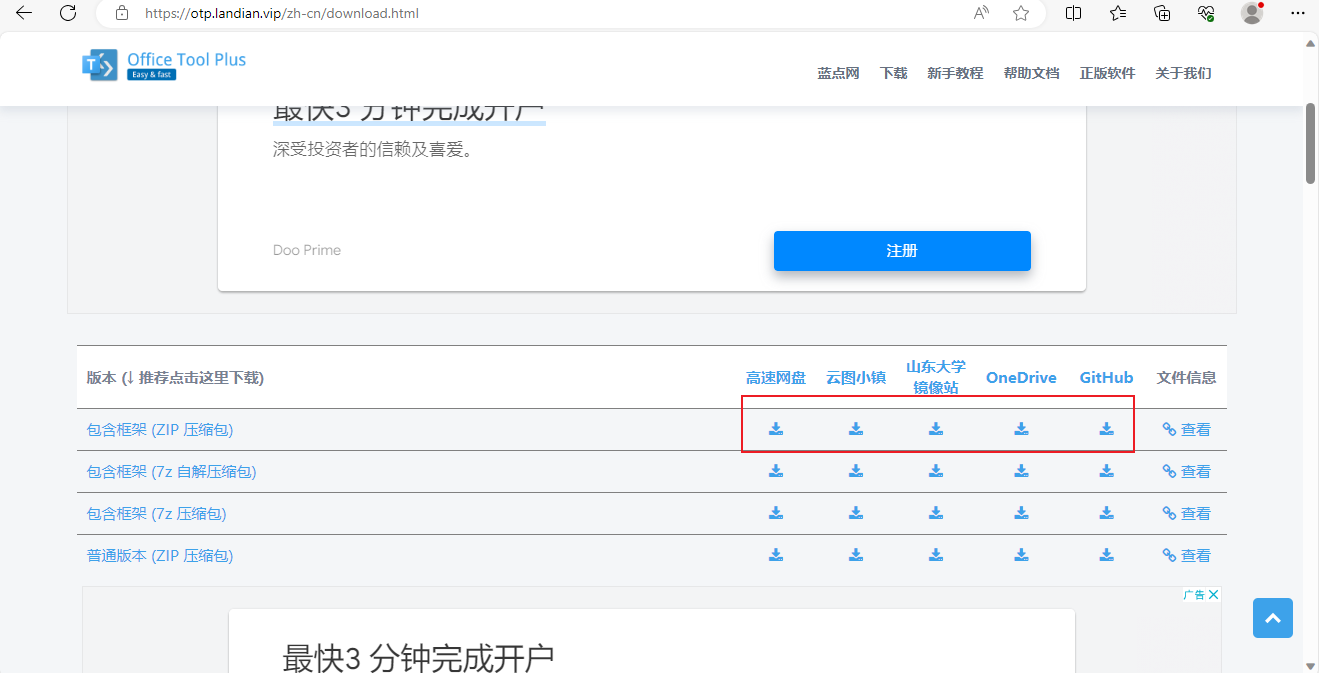 安装部分 这里推荐使用 Office Tool Plus 安装并激活Office。 网站:Office Tool Plus 打开网页后选择一个下载方式。
