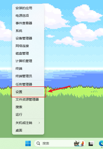 Windows会自动检测缺少的驱动程序,并通过系统更新的方式进行推送。 右键屏幕下方任务栏上的Windows标志(田字标),点击设置。