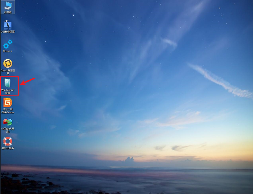 完成硬盘分区后,我们关闭DiskGenius回到桌面,打开“Windows安装器”。